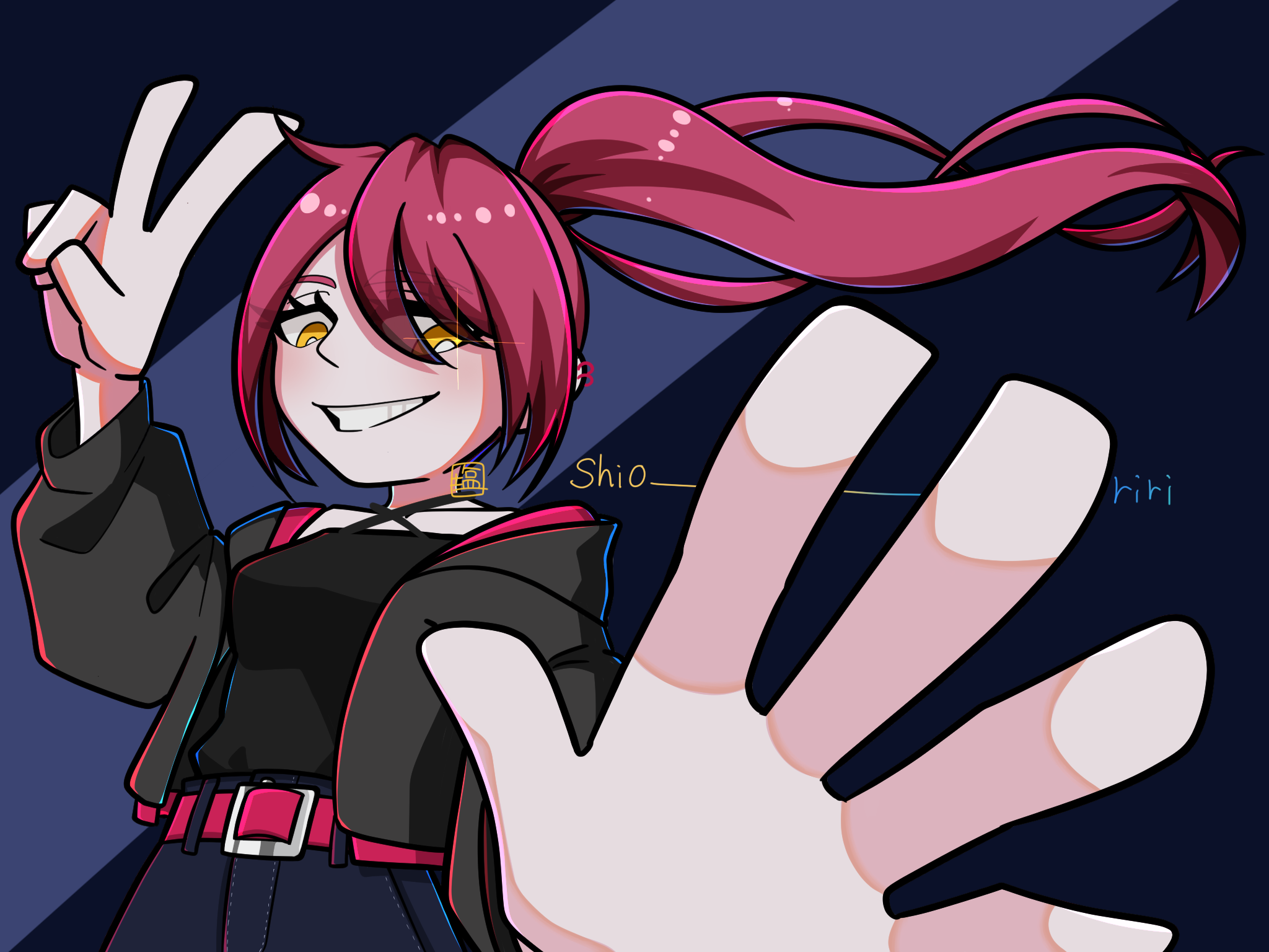 「かっこいい×かわいい」を目標にしつつ、カートゥーン調、らくがきのようなもの、風景など、様々な雰囲気のイラストを描いています。